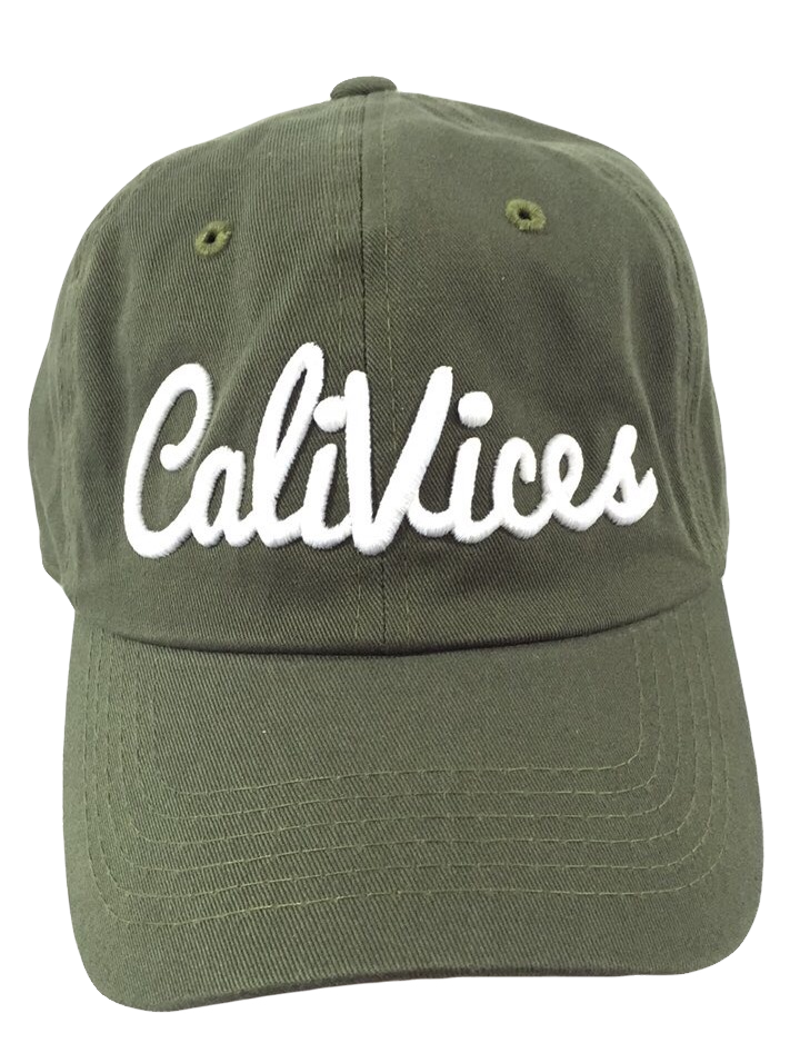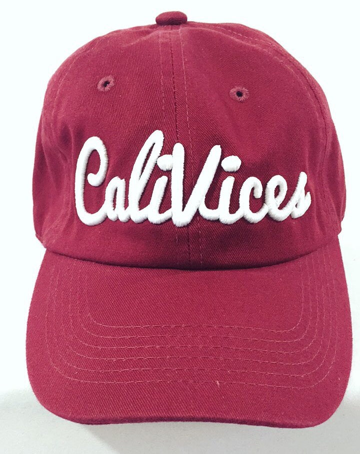 CaliVices logo baseball dad cap with gold buckle availabe in many colors, great for lazy hair day or to wear out at your favorite cafe or lounge