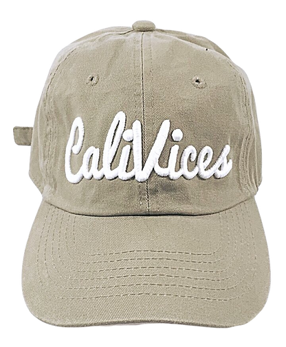 CaliVices logo baseball dad cap with gold buckle availabe in many colors, great for lazy hair day or to wear out at your favorite cafe or lounge