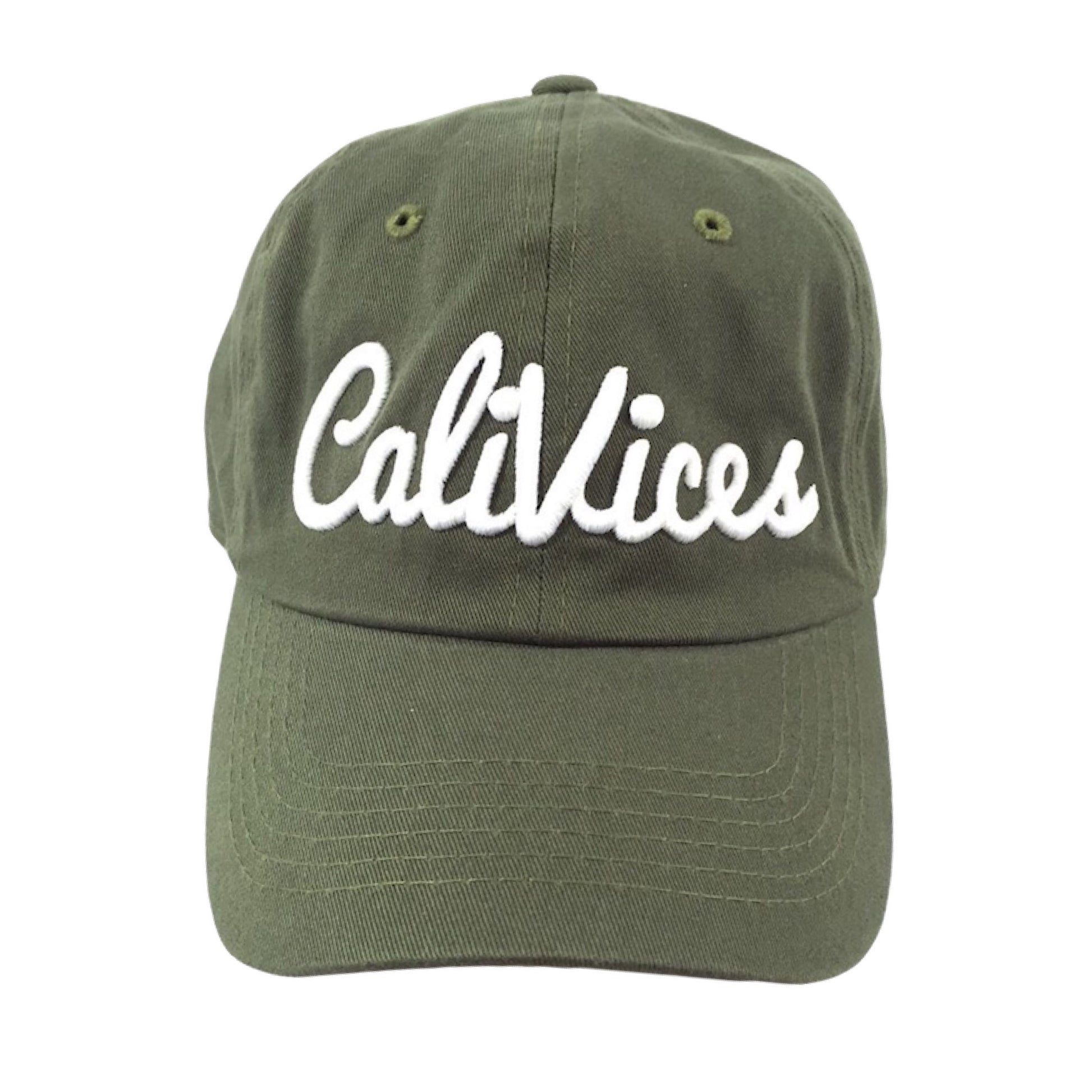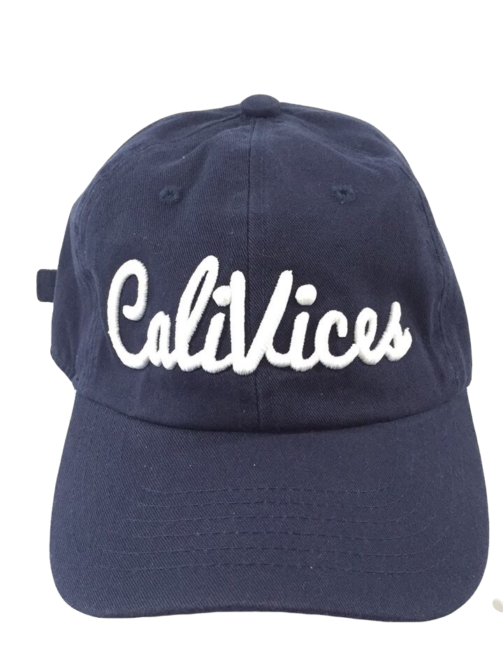 CaliVices logo baseball dad cap with gold buckle availabe in many colors, great for lazy hair day or to wear out at your favorite cafe or lounge