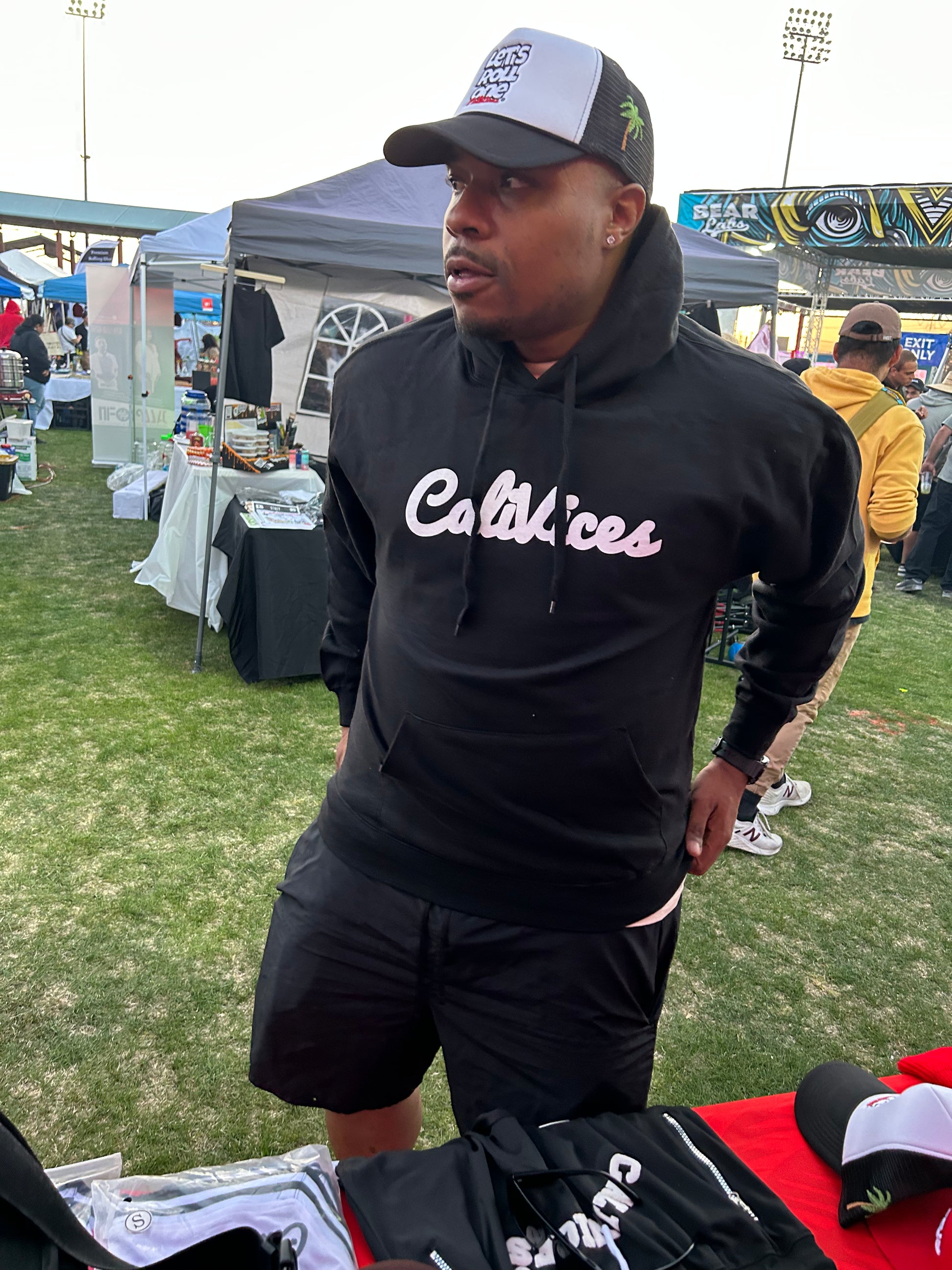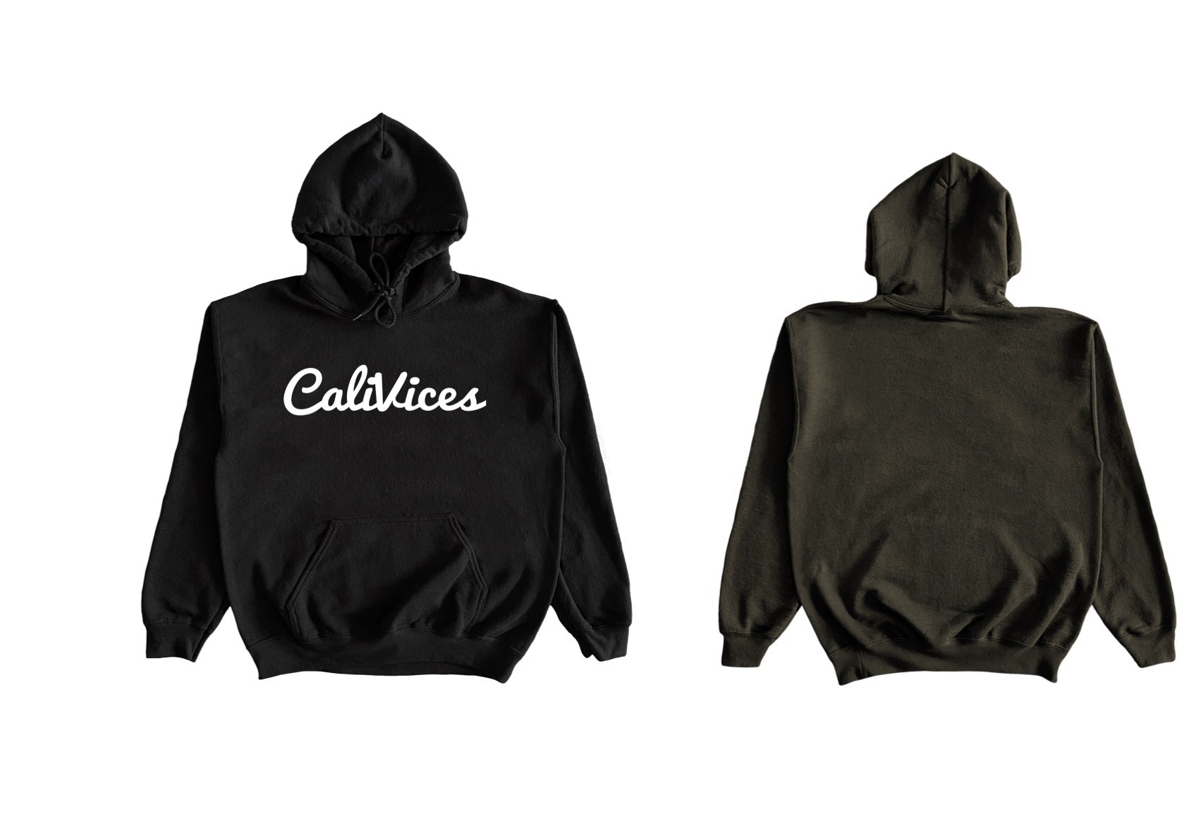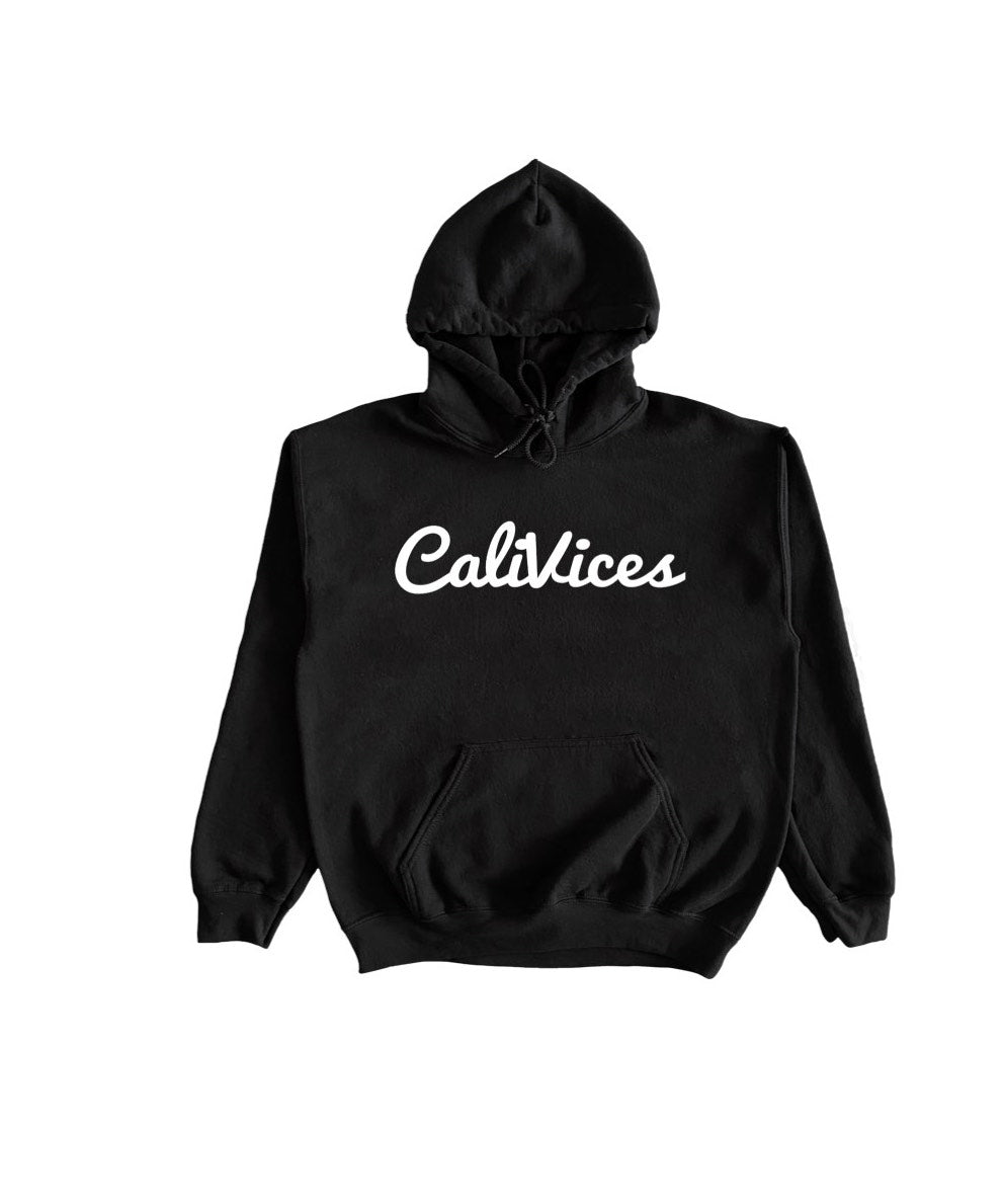 A signature script logo adorns the chest of this CALIVICES hoodie, cut from cotton to a boxy fit.